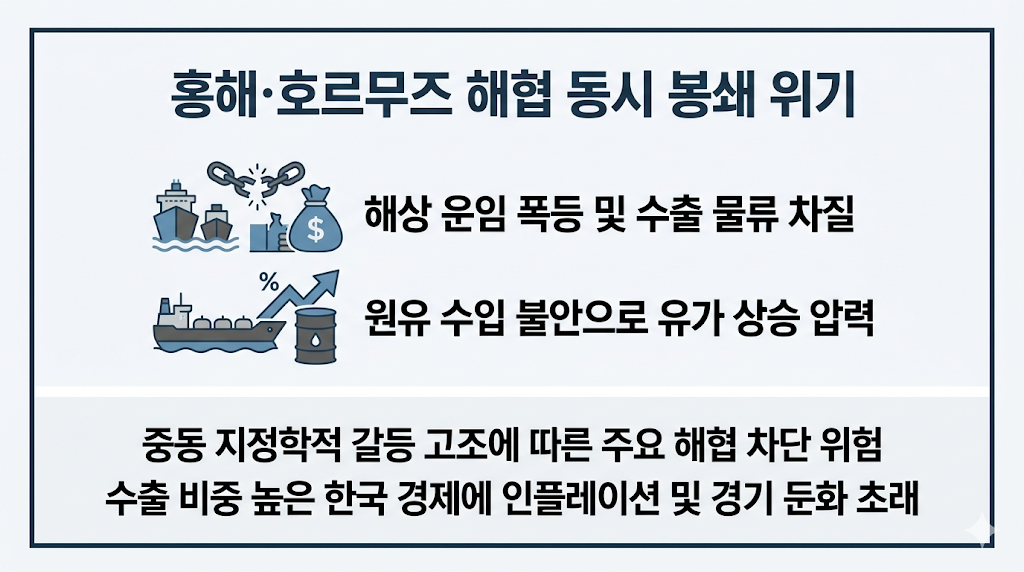 안녕하세요! HFMR 브리퍼 여러분 대한민국 경제의 실핏줄인 해상 물류망에 사상 최악의 시나리오가 현실화되고 있습니다. 유럽행 관문인 홍해에 이어, 전 세계